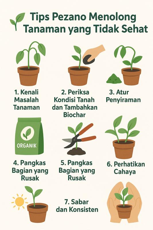 Tanaman yang tidak sehat bisa membuat hati pemiliknya ikut risau. Untungnya, Pezano hadir dengan beberapa tips sederhana namun efektif untuk menolong tanaman agar kembali segar dan sehat. Berikut panduan praktisnya: